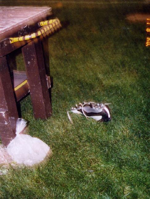 One of Jeff's shoes. I could have easily stolen it, but I let it be. Hey, a kicker's shoe is a big deal. And Jeff only treats his like babies...